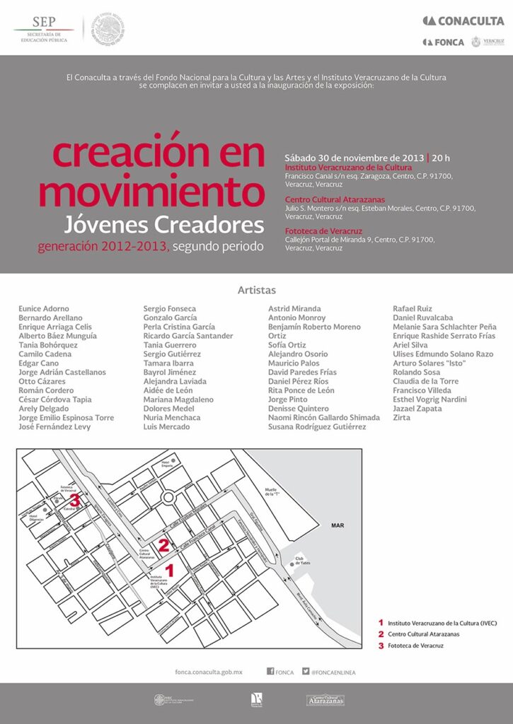 «Creación en movimiento» – exposición colectiva – Fototeca de Veracruzoctubre 21, 2025octubre 21, 2025exposición Inauguración: 30 de noviembre de 2013, 20:00 hrs. Instituto Veracruzano de la Cultura. Fototeca de Veracruz. Presento una parte del proyecto Documentos de viaje